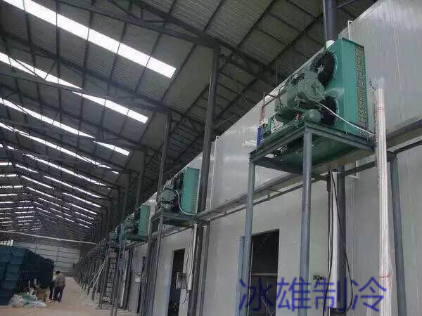 目前冷库采用无霜速冻制冷方式,配置名牌压缩机及制冷配件,采用自动化霜, 控制方式。